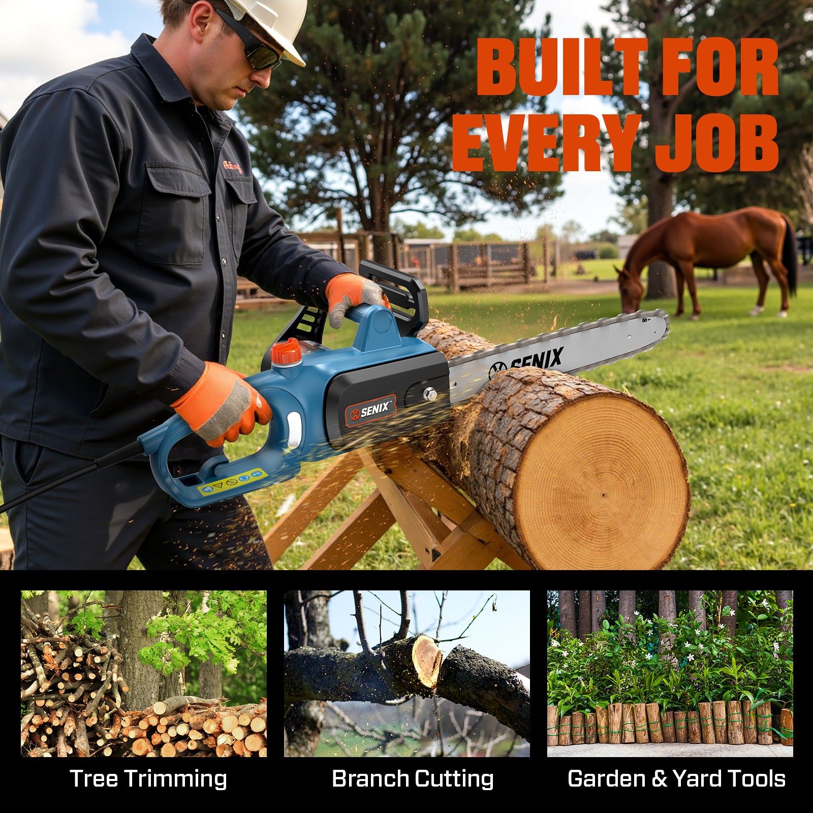 The SENIX CSE10-L 10 amp corded chainsaw features 14-inch bar and chain for smooth cutting. The auto oiler provides continuous lubrication to the bar and chain to ensure high performance and trouble free cutting. Includes bar cover. All SENIX corded handheld products are backed by our 3-year limited warranty for your peace of mind.