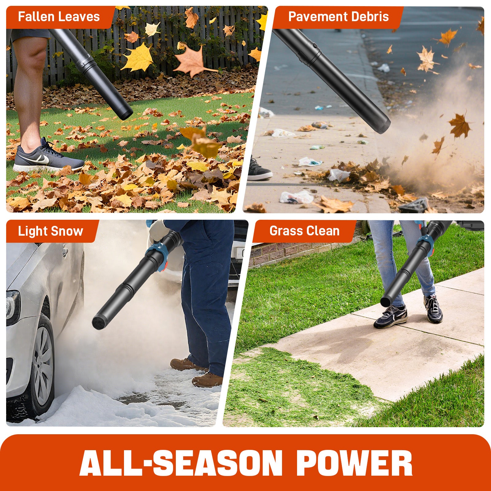 Salida de aire de 600 CFM/200 MPH : mueve hojas mojadas, césped, mantillo y escombros como si nada.