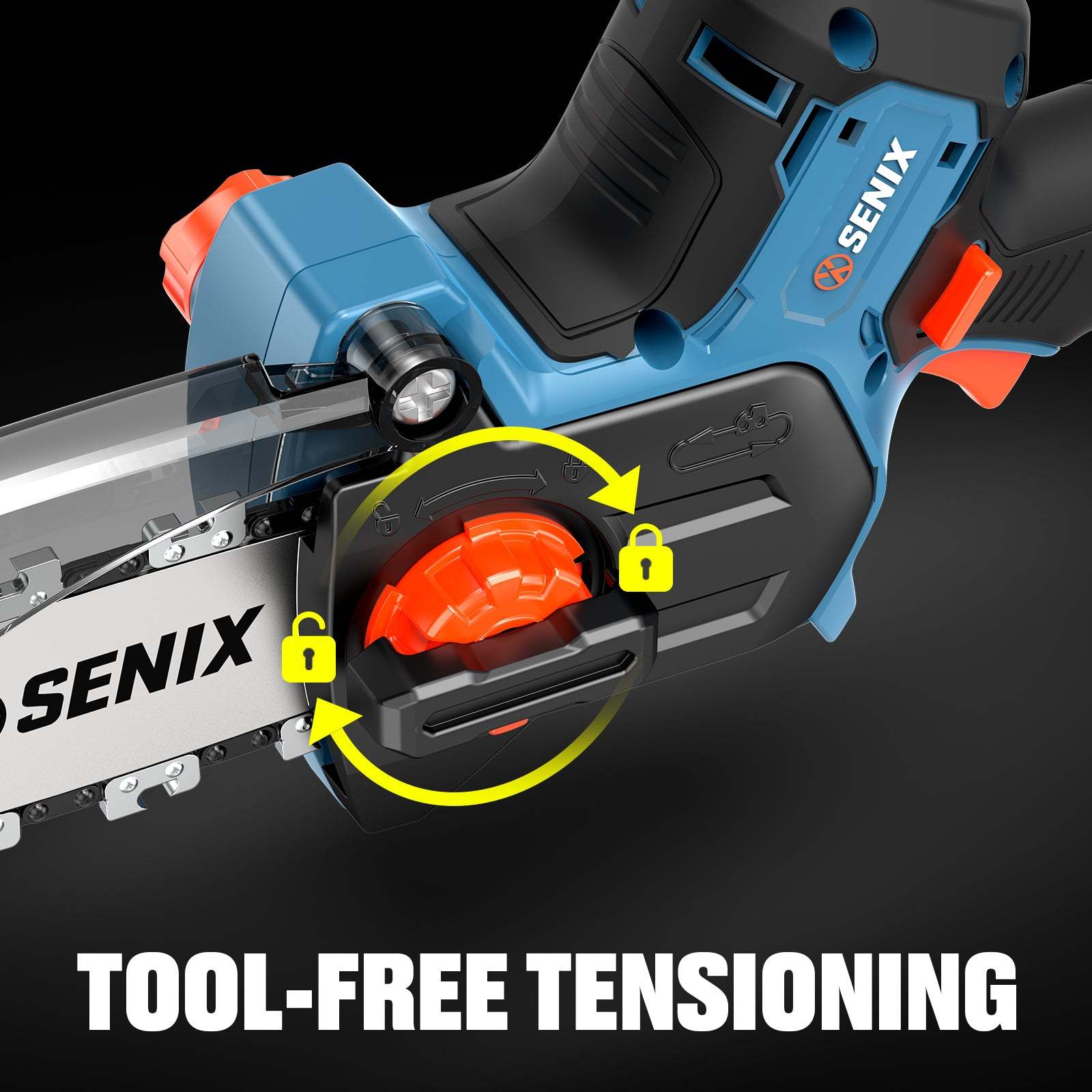 TENSIÓN DE CADENA SIN HERRAMIENTAS : ajustes rápidos y sencillos sin necesidad de herramientas, para que siempre esté listo para cortar.