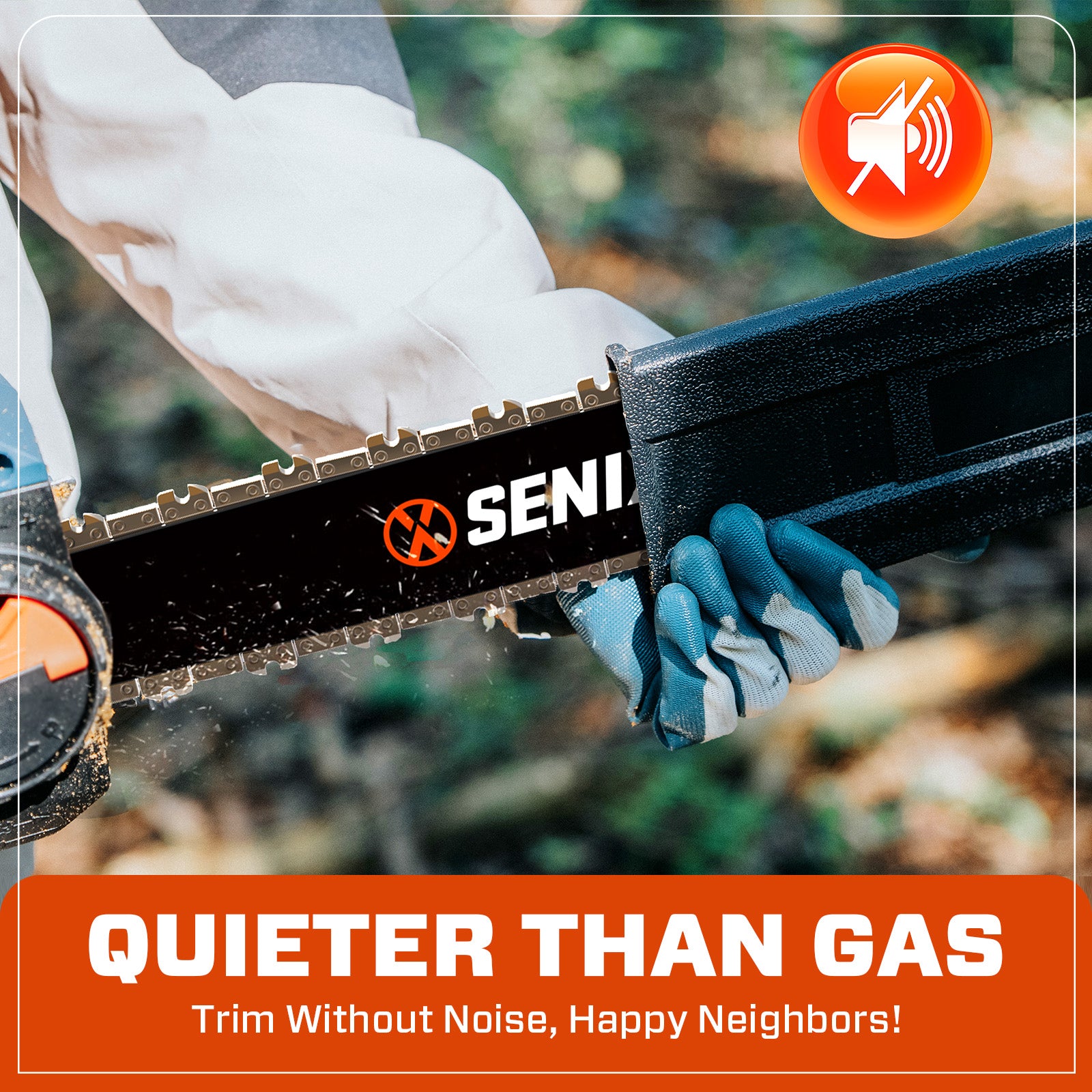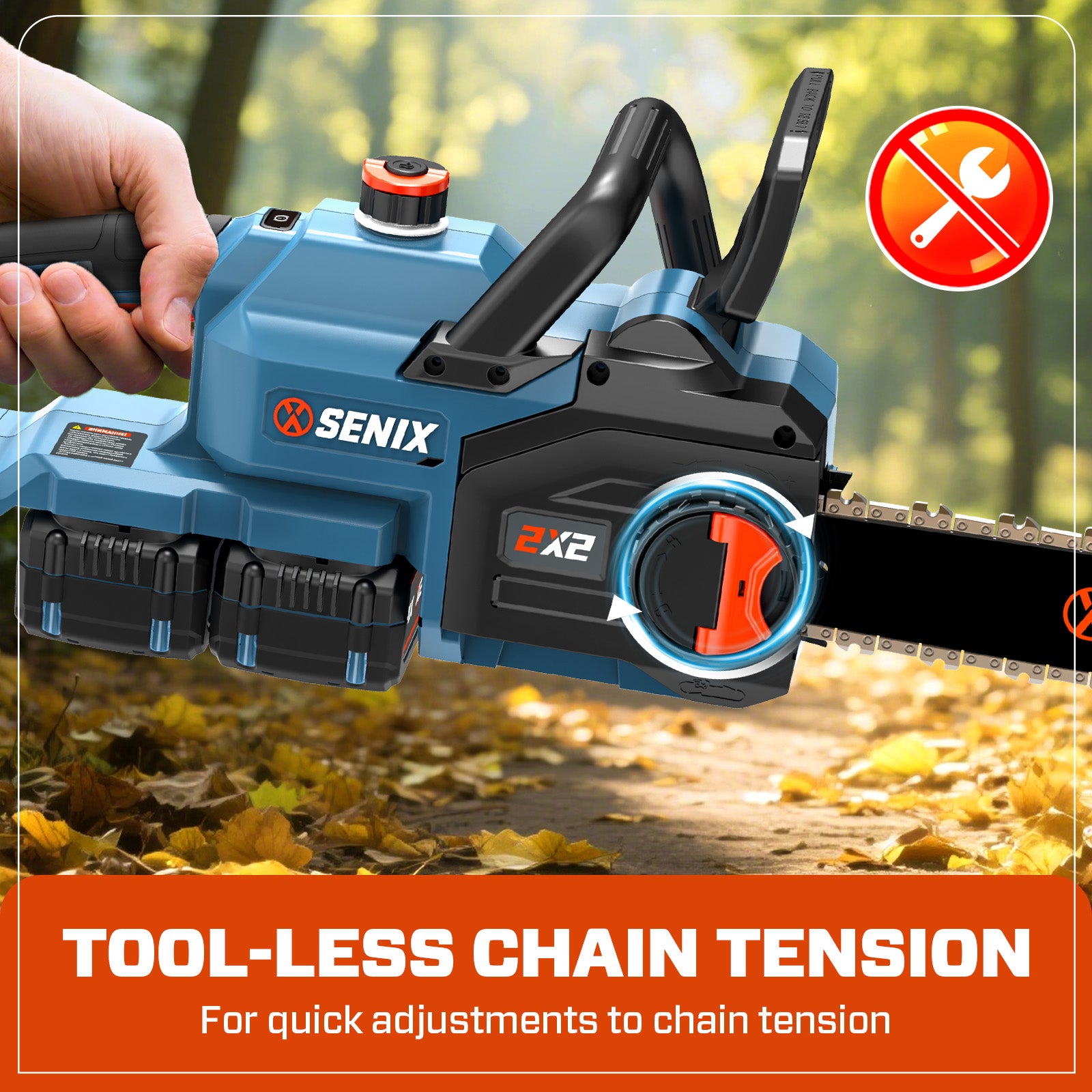 Experience the perfect blend of power, precision, and convenience with the SENIX 40V 2X2 14" Cordless Chainsaw. Designed for maximum productivity, this high-performance chainsaw is perfect for trimming branches, cutting firewood, and tackling small to medium-sized jobs. Powered by dual 20V batteries, it offers gas-like performance without the noise, emissions, or maintenance hassles. The SENIX 40V 2X2 14" Cordless Chainsaw is the perfect tool for homeowners and professionals seeking superior cutting power with the ease of cordless technology. With its high-performance features like the brushless motor, tool-free tensioning, and automatic chain lubrication, it’s built to handle tough tasks while keeping safety and ease of use a top priority.